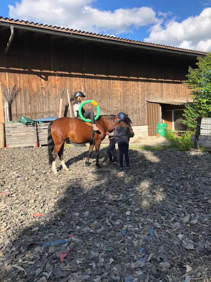 Der Ponyplausch richtet sich an Kinder zwischen 6 und 10-jährig welche gerne erste Pferdeluft schnuppern würden. Spielerisch werden die Kinder in kleinen Gruppen von 2-4 Kindern an den Umgang, die Pflege und erste Reitversuche herangeführt. Dabei arbeite ich mit einem Pony nach dem J&S-Konzept (Lernen-Lachen-Leisten).